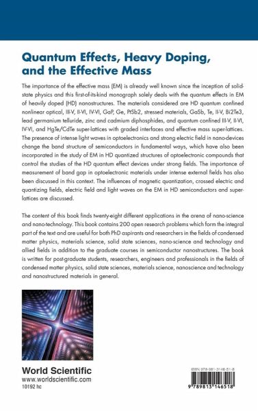 The importance of the effective mass (EM) is already well known since the inception of solid-state physics and this first-of-its-kind monograph solely deals with the quantum effects in EM of heavily doped (HD) nanostructures. The materials considered are HD quantum confined nonlinear optical, III-V, II-VI, IV-VI, GaP, Ge, PtSb2, stressed materials, GaSb, Te, II-V, Bi2Te3, lead germanium telluride, zinc and cadmium diphosphides, and quantum confined III-V, II-VI, IV-VI, and HgTe/CdTe super-lattices with graded interfaces and effective mass super-lattices. The presence of intense light waves in optoelectronics and strong electric field in nano-devices change the band structure of semiconductors in fundamental ways, which have also been incorporated in the study of EM in HD quantized structures of optoelectronic compounds that control the studies of the HD quantum effect devices under strong fields. The importance of measurement of band gap in optoelectronic materials under intense external fields has also been discussed in this context. The influences of magnetic quantization, crossed electric and quantizing fields, electric field and light waves on the EM in HD semiconductors and super-lattices are discussed. The content of this book finds twenty-eight different applications in the arena of nano-science and nano-technology. This book contains 200 open research problems which form the integral part of the text and are useful for both PhD aspirants and researchers in the fields of condensed matter physics, materials science, solid state sciences, nano-science and technology and allied fields in addition to the graduate courses in semiconductor nanostructures. The book is written for post-graduate students, researchers, engineers and professionals in the fields of condensed matter physics, solid state sciences, materials science, nanoscience and technology and nanostructured materials in general.