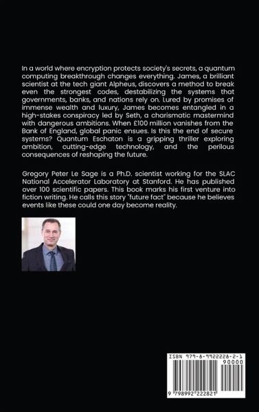 In a world where encryption protects society's secrets, a quantum computing breakthrough changes everything. James, a brilliant scientist at the tech giant Alpheus, discovers a method to break even the strongest codes, destabilizing the systems that governments, banks, and nations rely on. Lured by promises of immense wealth and luxury, James becomes entangled in a high-stakes conspiracy led by Seth, a charismatic mastermind with dangerous ambitions. When £100 million vanishes from the Bank of England, global panic ensues. Is this the end of secure systems? Quantum Eschaton is a gripping thriller exploring ambition, cutting-edge technology, and the perilous consequences of reshaping the future.