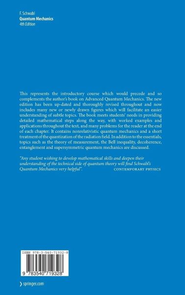 From the reviews: "Any student wishing to develop mathematical skills and deepen their understanding of the technical side of quantum theory will find Schwabl's Quantum Mechanics very helpful". Contemporary Physics From the reviews of the fourth edition: "Quantum Mechanics ... presents a nice balance between theory and practical applications in this work that is intended for introductory coursework. It is designed to complement the author's Advanced Quantum Mechanics (2005). Schwabl (Technische Universität München) succinctly covers a wide range of topics in 20 chapters ... . The book also includes worked examples and applications. Summing Up: Recommended. Upper-division undergraduates through researchers and faculty." (D. B. Moss, CHOICE, Vol. 45 (10), June, 2008) "It is an excellent introduction for students of physics or mathematics into the fundamentals of quantum mechanics covering the methods used in applications. ... The main point is that the fundamentals and methods of quantum mechanics are mediated very well and guide the reader to apply them successfully. This book can be best recommended to students and lecturers." (K.-E. Hellwig, Zentralblatt MATH, Vol. 1166, 2009)