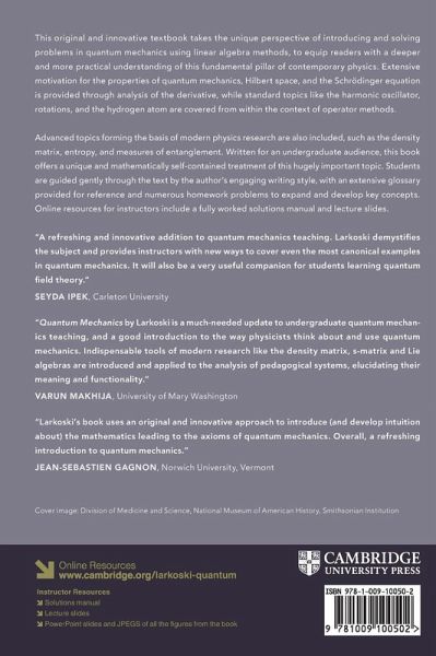 This innovative textbook takes the unique perspective of introducing and solving problems in quantum mechanics using linear algebra methods. Written for an undergraduate audience and with an engaging writing style, it includes numerous homework problems to expand upon key concepts, and a solutions manual and lecture slides for instructors.
