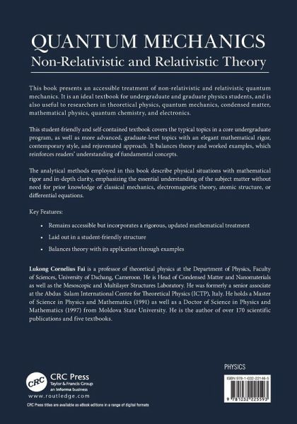 This book presents an accessible treatment of non-relativistic and relativistic quantum mechanics. It is an ideal textbook for undergraduate and graduate physics students, and is also useful to researchers in theoretical physics, quantum mechanics, condensed matter, mathematical physics, quantum chemistry, and electronics.