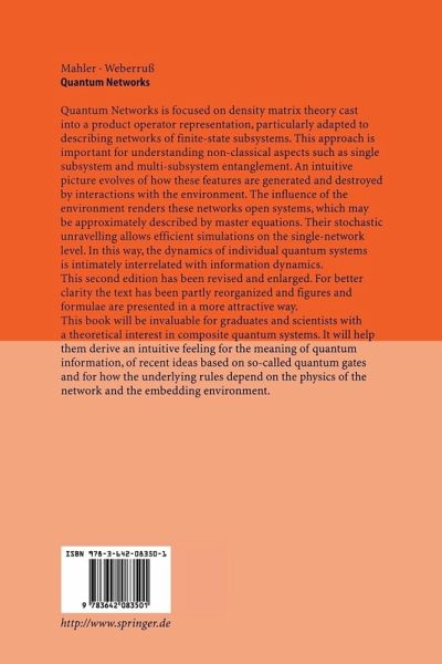 Quantum Networks is focused on density matrix theory cast into a product operator representation, particularly adapted to describing networks of finite state subsystems. This approach is important for understanding non-classical aspects such as single subsystem and multi-subsystem entanglement. An intuitive picture evolves of how these features are generated and destroyed by interactions with the environment. This second edition has been revised and enlarged. For better clarity the text has been partly reorganized and figures and formulae are presented in a more attractive way.
