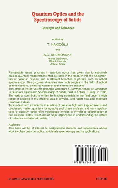 This state-of-the-art volume presents work from a Summer School on Advances in Quantum Optics and Spectroscopy of Solids, held in Ankara, Turkey, in 1995. The various contributions written by leading scientists in the field cover a wide range of subjects in this exciting area of physics, and report new and important results and ideas.