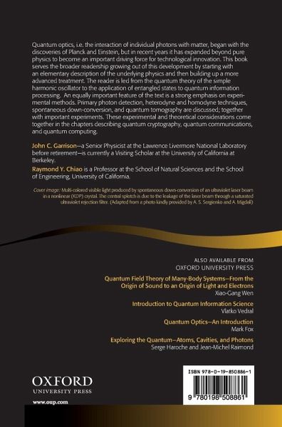 Quantum optics, i.e. the interaction of individual photons with matter, began with the discoveries of Planck and Einstein, but in recent years it has expanded beyond pure physics to become an important driving force for technological innovation. This book serves the broader readership growing out of this development by starting with an elementary description of the underlying physics and then building up a more advanced treatment. The reader is led from the quantumtheory of the simple harmonic oscillator to the application of entangled states to quantum information processing. An equally important feature of the text is a strong emphasis on experimental methods. Primary photon detection, heterodyne and homodyne techniques, spontaneous down-conversion, and quantum tomography are discussed, together with important experiments. These experimental and theoretical considerations come together in the chapters describing quantum cryptography, quantum communications, and quantum computing.