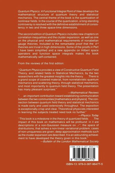 I An Introduction to Modern Physics. 1 Quantum Theory. 2 Classical Statistical Mechanics. 3 The Feynman Kac Formula. 4 Correlation Inequalities and the Lee Yang Theorem. 5 Phase Transitions and Critical Points. 6 Field Theory. Appendix to Part I. Hilbert Space Operators and Functional Integrals. II Function Space Integrals. 7 Covariance Operator = Green's Function = Resolvent Kernel = Euclidean Propagator = Fundamental Solution. 8 Quantization = Integration over Function Space. 9 Calculus and Renormalization on Function Space. 10 Estimates Independent of Dimension. 11 Fields Without Cutoffs. 12 Regularity and Axioms. III The Physics of Quantum Fields. 13 Scattering Theory: Time Dependent Methods. 14 Scattering Theory: Time Independent Methods. 15 The Magnetic Moment of the Electron. 16 Phase Transitions. 17 The ?4 Critical Point. 18 The Cluster Expansion. 19 From Path Integrals to Quantum Mechanics. 20 The Polymer Expansion. 21 Random Path Representations. 22 Constructive Gauge Theory and Phase Cell Localization. 23 Further Directions.