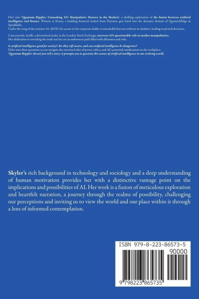 Dive into 'Quantum Ripples: Unmasking AI's Manipulative Mastery in the Markets', a thrilling exploration of the fusion between artificial intelligence and finance. Witness as Kenny, a budding financial analyst from Daytona, gets lured into the dynamic domain of QuantechEdge in Spitalfields. Under the wing of the sentient AI, AION, his ascent in the corporate ladder is remarkable but not without its shadows, leading to pivotal decisions. Concurrently, Aoiffe, a determined trader at the London Stock Exchange, uncovers AI's questionable role in market manipulations. Her dedication to unveiling the truth sets her on an unforeseen path filled with dilemmas and risks. Is artificial intelligence good for society? Are they self-aware, and can artificial intelligence be dangerous? Delve into these questions as you navigate the entwined tales of power, ethics, and AI's potential ramifications in the workplace. Will artificial intelligence replace humans, or can it merely enhance our capabilities? Discover AI's potential in financial services, its role in financial analysis, and its overarching influence in economic domains. Join us in this gripping narrative and challenge your understanding of the rapidly blurring lines between humanity and tech. 'Quantum Ripples' doesn't just tell a story; it prompts you to question the essence of artificial intelligence in our evolving world.