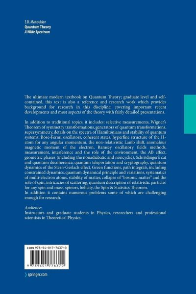 "This book is a modern textbook covering most aspects of the theory and recent developments. The topics included in this book are useful either to graduate students in physics or researchers in this discipline and in the related fields as well. ... The book contains a lot of problems at the end of each Chapter that should be attempted by every serious reader. The book, unquestionably attractive to all those interested in Quantum Theory, is an invaluable source of material for this field." (Marian Ioan Munteanu, Zentralblatt MATH, Vol. 1126 (3), 2008)
