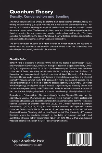 Quantum Theory: Density, Condensation, and Bonding presents in a unitary manner the main actual theories of matter, mainly the density function theory (DFT) for fermions, the Bose-Einstein condensation (BEC) for bosons, and chemical bonding as a special realization of the first two so-called mixed fermionic-bosonic states. The book covers the modern and ultimately developed quantum theories involving the key concepts of density, condensation, and bonding. The book compiles, for the first time, the density functional theory with Bose-Einstein condensation and chemical bonding theories in a fresh and novel perspective. The book introduces modern theories of matter structure and explains the nature of chemical bonds under the consecrated and ultimate quantum paradigms of molecular structure. The book is divided into three parts, one for each level of studies: Part I: Primer Density Functional Theory is suitable for undergraduate introductory courses in physics, chemistry, and the natural sciences. Part II: Primer Density Functional Bose-Einstein Condensation Theory would be suitable for graduate- or master-level courses in physics or natural sciences. Part III: Modern Quantum Theories of Chemical Bonding is written for the post-graduate, master or doctorate courses on quantum structure of molecules in chemistry or natural sciences. Thus, this book is organized as a succession of three linked courses, from undergraduate, to graduate, to postgraduate levels in modern quantum theories of many-body systems. It covers three main concepts: density, condensation, and bonding and contains the most celebrated and challenging theories of matter. The book provides a fresh perspective on the quantum theory of structure of physico-chemical systems and will show students at all levels and researchers the way for future elaboration and discoveries toward the unification of the physical and chemical concepts of matter.