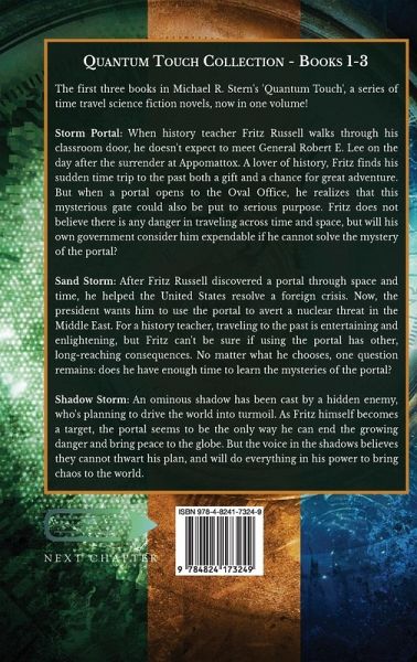 The first three books in Michael R. Stern's 'Quantum Touch', a series of time travel science fiction novels, now in one volume! Storm Portal: When history teacher Fritz Russell walks through his classroom door, he doesn't expect to meet General Robert E. Lee on the day after the surrender at Appomattox. A lover of history, Fritz finds his sudden time trip to the past both a gift and a chance for great adventure. But when a portal opens to the Oval Office, he realizes that this mysterious gate could also be put to serious purpose. Fritz does not believe there is any danger in traveling across time and space, but will his own government consider him expendable if he cannot solve the mystery of the portal? Sand Storm: After Fritz Russell discovered a portal through space and time, he helped the United States resolve a foreign crisis. Now, the president wants him to use the portal to avert a nuclear threat in the Middle East. For a history teacher, traveling to the past is entertaining and enlightening, but Fritz can't be sure if using the portal has other, long-reaching consequences. No matter what he chooses, one question remains: does he have enough time to learn the mysteries of the portal? Shadow Storm: An ominous shadow has been cast by a hidden enemy, who's planning to drive the world into turmoil. As Fritz himself becomes a target, the portal seems to be the only way he can end the growing danger and bring peace to the globe. But the voice in the shadows believes they cannot thwart his plan, and will do everything in his power to bring chaos to the world.