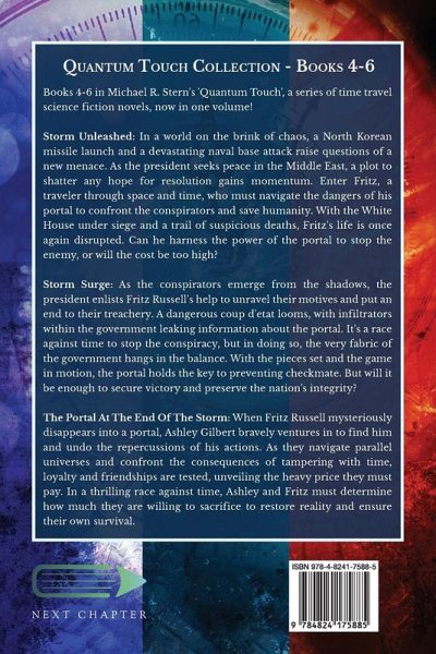 Books 4-6 in Michael R. Stern's 'Quantum Touch', a series of time travel science fiction novels, now in one volume! Storm Unleashed: In a world on the brink of chaos, a North Korean missile launch and a devastating naval base attack raise questions of a new menace. As the president seeks peace in the Middle East, a plot to shatter any hope for resolution gains momentum. Enter Fritz, a traveler through space and time, who must navigate the dangers of his portal to confront the conspirators and save humanity. With the White House under siege and a trail of suspicious deaths, Fritz's life is once again disrupted. Can he harness the power of the portal to stop the enemy, or will the cost be too high? Storm Surge: As the conspirators emerge from the shadows, the president enlists Fritz Russell's help to unravel their motives and put an end to their treachery. A dangerous coup d'etat looms, with infiltrators within the government leaking information about the portal. It's a race against time to stop the conspiracy, but in doing so, the very fabric of the government hangs in the balance. With the pieces set and the game in motion, the portal holds the key to preventing checkmate. But will it be enough to secure victory and preserve the nation's integrity? The Portal At The End Of The Storm: When Fritz Russell mysteriously disappears into a portal, Ashley Gilbert bravely ventures in to find him and undo the repercussions of his actions. As they navigate parallel universes and confront the consequences of tampering with time, loyalty and friendships are tested, unveiling the heavy price they must pay. In a thrilling race against time, Ashley and Fritz must determine how much they are willing to sacrifice to restore reality and ensure their own survival.
