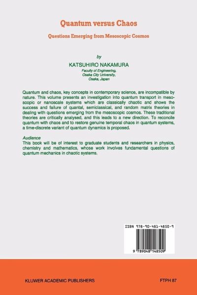 Quantum and chaos, key concepts in contemporary science, are incompatible by nature. This volume presents an investigation into quantum transport in mesoscopic or nanoscale systems which are classically chaotic and shows the success and failure of quantal, semiclassical, and random matrix theories in dealing with questions emerging from the mesoscopic cosmos. These traditional theories are critically analysed, and this leads to a new direction. To reconcile quantum with chaos and to restore genuine temporal chaos in quantum systems, a time-discrete variant of quantum dynamics is proposed.…mehr
