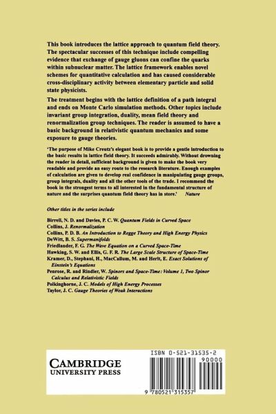 This book introduces the lattice approach to quantum field theory. The spectacular successes of this technique include compelling evidence that exchange of gauge gluons can confine the quarks within subnuclear matter. The lattice framework enables novel schemes for quantitative calculation and has caused considerable cross-disciplinary activity between elementary particle and solid state physicists. The treatment begins with the lattice definition of a path integral and ends on Monte Carlo simulation methods. Other topics include invariant group integration, duality, mean field theory and renormalization group techniques. The reader is assumed to have a basic background in relativistic quantum mechanics and some exposure to gauge theories.