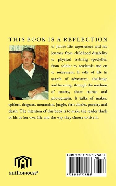 This book is a reflection of John's life experiences and his journey from childhood disability to physical training specialist, from soldier to academic and on to retirement. It tells through the medium of poetry, short stories and photographs, of a life in search of adventure, challenge and learning. It talks of snakes, spiders, dragons, mountains, jungle, fern cloaks, poverty, education, life and death. It reflects on cause and effect, and experiences in many countries around the world including Europe, Africa and the Far East. The intention of the book is to make the reader think of his or her own life, the way they choose to live it and perhaps to write about it. All the stories are based on fact and the poems are designed to highlight the circumstances in which they were conceived. There is a little philosophical content to some of the work, but at no time is it patronising, misleading or dishonest. Any reference to religion is not orientated towards any particular faith, but towards the millions of people throughout the world who believe in the power of good.