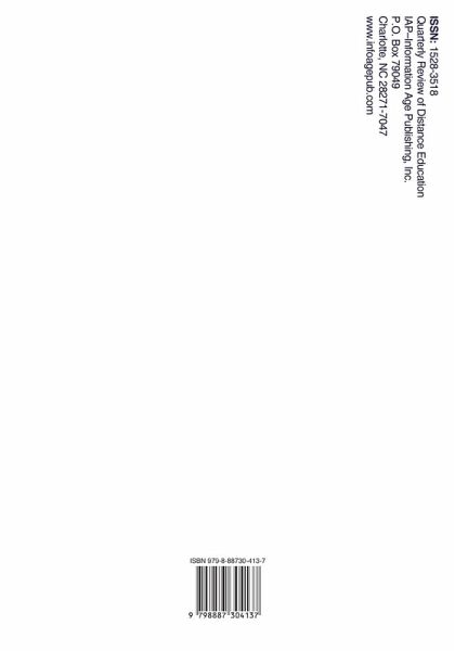 The Quarterly Review of Distance Education is a rigorously refereed journal publishing articles, research briefs, reviews, and editorials dealing with the theories, research, and practices of distance education. The Quarterly Review publishes articles that utilize various methodologies that permit generalizable results which help guide the practice of the field of distance education in the public and private sectors. The Quarterly Review publishes full-length manuscripts as well as research briefs, editorials, reviews of programs and scholarly works, and columns. The Quarterly Review defines distance education as institutionally based, formal education, where the learning group is separated and where interactive technologies are used to unite the learning group.