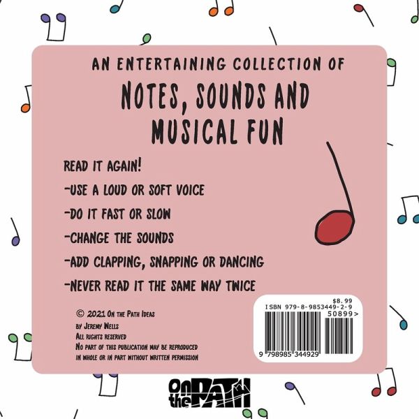 Playful and engaging music learning for children! A first primer on simple sounds, music notation and rhythm in a simple, fun and engaging book. Introduces young children to the music concepts of quarter and eighth note symbols representing sounds, creative expression, and playful music making. Colorful images of rhythmic icons and musical symbols. Sound words are simple and playful onomatopoeia.