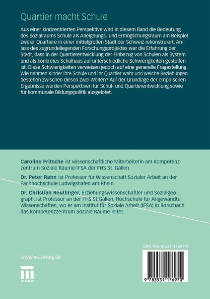 Aus einer kindzentrierten Perspektive wird in diesem Band die Bedeutung des Sozialraums Schule als Aneignungs- und Ermöglichungsraum am Beispiel zweier Quartiere in einer mittelgroßen Stadt der Schweiz rekonstruiert. Anlass des zugrundeliegenden Forschungsprojektes war die Erfahrung der Stadt, dass in der Quartierentwicklung der Einbezug von Schulen als System und als konkretes Schulhaus auf unterschiedliche Schwierigkeiten gestoßen ist. Diese Schwierigkeiten verweisen jedoch auf eine generelle Fragestellung: Wie nehmen Kinder ihre Schule und ihr Quartier wahr und welche Beziehungen bestehen zwischen diesen zwei Welten? Auf der Grundlage der empirischen Ergebnisse werden Perspektiven für Schul- und Quartierentwicklung sowie für kommunale Bildungspolitik ausgelotet.