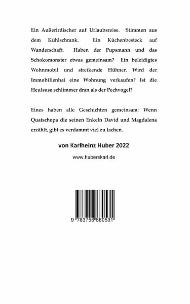 Müssen Kinderbücher immer lehrreich sein oder einen tiefgründigen Sinn ergeben? Sind unsinnige Geschichten nicht viel witziger? Quatschopas 19 verrückte Erzählungen haben keinen tieferen Sinn. Sie sind einfach nur unglaublich lustig. Ob sie letztlich lehrreich sind, darf der Leser selbst entscheiden. Quatschopas beide Enkel David und Magdalena können jedenfalls nicht genug davon bekommen.