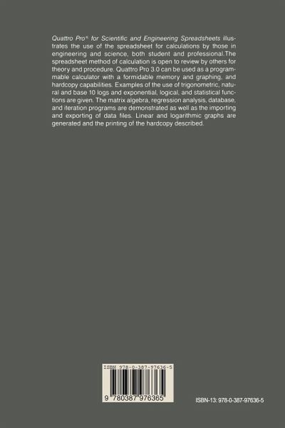 Engineers and scientists can use spreadsheets to help them quickly solve technical problems. Ideal for analyzing and manipulating data, Quattro Pro spreadsheet software from Borland International, also turns out to be an excellent tool for technologists requiring database management, mathematical functions, graphing data, statistics, regressive analysis, matrix arithmetic, and more. In this book, professional engineer Robert G. Parks describes the specific functions of Quattro Pro 3.0 that benefit scientists and engineers in a range of disciplines. The book contains numerous examples with clearly defined steps to help technologists integrate Borland's powerful software into their daily work lives.