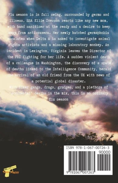 Flu season is in full swing, surrounded by germs and illness, SSA Ellie Iverson reacts like any new mom, with hand sanitizer at the ready and a desire to keep away from anti-vaxers. Her newly hatched germaphobia escalates when Delta A is asked to investigate animal rights activists and a missing laboratory monkey. An incident in Lexington, Virginia leaves the Director of the FBI fighting for her life. A sudden violent death of a colleague in Washington, the discovery of a spate of deaths linked to the Intelligence Community, herald the arrival of an old friend from the UK with news of a potential global disaster. With biker gangs, drugs, grudges, and a plethora of 'accidental' deaths in the mix, this is no ordinary flu season.
