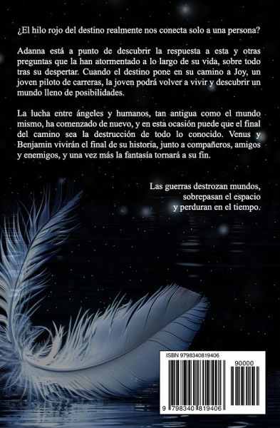 ¿El hilo rojo del destino realmente nos conecta solo a una persona? Adanna está a punto de descubrir la respuesta a esta y otras preguntas que la han atormentado a lo largo de su vida, sobre todo tras su despertar. Cuando el destino pone en su camino a Joy, un joven piloto de carreras, la joven podrá volver a vivir y descubrir un mundo lleno de posibilidades. La lucha entre ángeles y humanos, tan antigua como el mundo mismo, ha comenzado de nuevo, y en esta ocasión puede que el final del camino sea la destrucción de todo lo conocido. Venus y Benjamin vivirán el final de su historia, junto a compañeros, amigos y enemigos, y una vez más la fantasía tornará a su fin. Las guerras destrozan mundos, sobrepasan el espacio y perduran en el tiempo