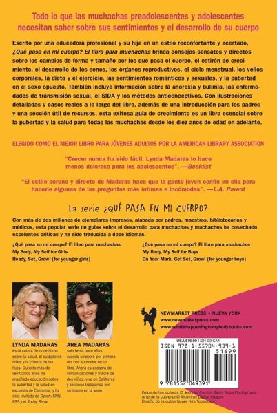 Lynda Madaras is the author of 12 books on health, child care, and parenting. For more than 25 years, she taught puberty and health education in California schools, and she has appeared on Oprah, CNN, PBS, and the Today Show. Lynda Madaras es la autora de doce libros sobre la salud, el cuidado de ninos y la crianza de los hijos. Durante mas de veinticinco anos ha ensenado sobre la pubertad y la salud en escuelas de California, y ha sido invitada de Oprah, CNN, PBS y el Today Show.