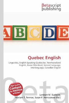 Please note that the content of this book primarily consists of articles available from Wikipedia or other free sources online.Quebec English is the common term for the set of various linguistic and social phenomena affecting the use of English in the predominantly French-speaking Canadian Province of Quebec. There are few distinctive phonological features and very few restricted lexical features common among English-speaking Quebecers. The English spoken in Quebec generally belongs to West/Central Canadian English whose Sprachraum comprises one of the largest and most homogeneous dialect areas in North America. The dialect is common in Montreal, where the vast majority of anglophones in Quebec live, as well as in large metropolitan areas of Ontario and Western Canada. It is very similar to General American English. English-speaking Montrealers also have established ethnic groups that retain distinct lexical features: Irish, Jewish, Italian, and Greek communities all speak discernible varieties of English. Given that these communities have considerable mobility within Canada, they retain traits common in many Canadian cities.