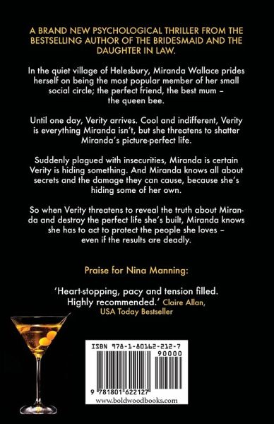 A brand new psychological thriller from the bestselling author of The Bridesmaid and The Daughter in Law. In the quiet village of Helesbury, Miranda Wallace prides herself on being the most popular member of her small social circle; the perfect friend, the best mum - the queen bee. Until one day, Verity arrives. Cool and indifferent, Verity is everything Miranda isn't, but she threatens to shatter Miranda's picture-perfect life. Suddenly plagued with insecurities, Miranda is certain Verity is hiding something. And Miranda knows all about secrets and the damage they can cause, because she's hiding some of her own. So when Verity threatens to reveal the truth about Miranda and destroy the perfect life she's built, Miranda knows she has to act to protect the people she loves - even if the results are deadly. Praise for Nina Manning: 'Heart-stopping, pacy and tension filled. Highly recommended.' Claire Allan , USA Today Bestseller 'Compelling and claustrophobic, Nina is an exciting new voice and definitely one to watch' Phoebe Morgan, author of The Babysitter 'Chilling and creepy. An atmospheric and addictive debut.' Diane Jeffrey, author of The Guilty Mother 'Totally addictive. I couldn't put it down!' Darren O'Sullivan, author of Closer Than You Think 'A claustrophobic, nail-biting thriller that draws you in and doesn't let go.' Naomi Joy, author of The Liars 'Clever, emotionally draining and totally gripping. I absolutely loved this book!' D E White, author of The Forgotten Child.