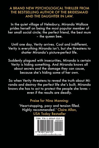 A brand new psychological thriller from the bestselling author of The Bridesmaid and The Daughter in Law. In the quiet village of Helesbury, Miranda Wallace prides herself on being the most popular member of her small social circle; the perfect friend, the best mum - the queen bee. Until one day, Verity arrives. Cool and indifferent, Verity is everything Miranda isn't, but she threatens to shatter Miranda's picture-perfect life. Suddenly plagued with insecurities, Miranda is certain Verity is hiding something. And Miranda knows all about secrets and the damage they can cause, because she's hiding some of her own. So when Verity threatens to reveal the truth about Miranda and destroy the perfect life she's built, Miranda knows she has to act to protect the people she loves - even if the results are deadly. Praise for Nina Manning: 'Heart-stopping, pacy and tension filled. Highly recommended.' Claire Allan , USA Today Bestseller 'Compelling and claustrophobic, Nina is an exciting new voice and definitely one to watch' Phoebe Morgan, author of The Babysitter 'Chilling and creepy. An atmospheric and addictive debut.' Diane Jeffrey, author of The Guilty Mother 'Totally addictive. I couldn't put it down!' Darren O'Sullivan, author of Closer Than You Think 'A claustrophobic, nail-biting thriller that draws you in and doesn't let go.' Naomi Joy, author of The Liars 'Clever, emotionally draining and totally gripping. I absolutely loved this book!' D E White, author of The Forgotten Child.