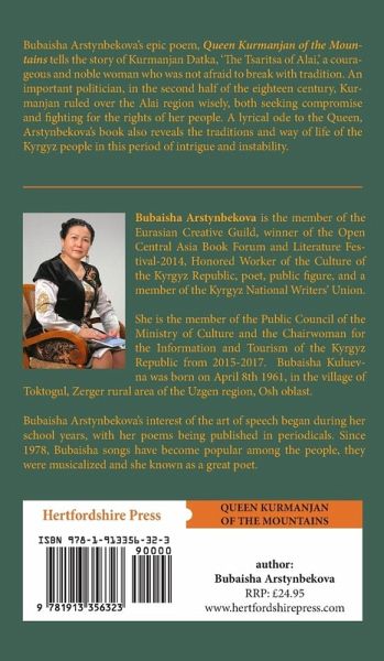 Bubaisha Arstynbekova's epic poem, Queen Kurmanjan of the Mountains tells the story of Kurmanjan Datka, 'The Tsaritsa of Alai,' a courageous and noble woman who was not afraid to break with tradition. An important politician, in the second half of the eighteen century, Kurmanjan ruled over the Alai region wisely, both seeking compromise and fighting for the rights of her people. A lyrical ode to the Queen, Arstynbekova's book also reveals the traditions and way of life of the Kyrgyz people in this period of intrigue and instability.