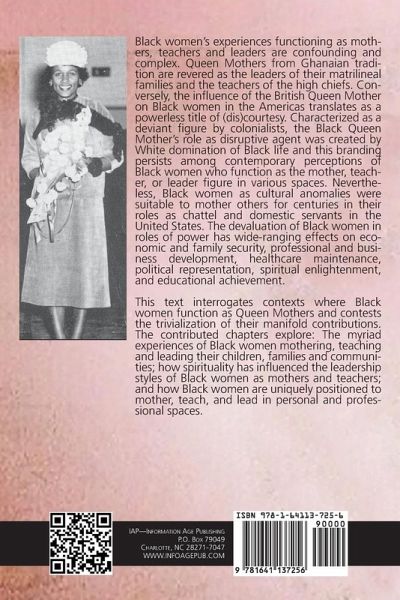 Black women's experiences functioning as mothers, teachers and leaders are confounding and complex. Queen Mothers from Ghanaian tradition are revered as the leaders of their matrilineal families and the teachers of the high chiefs (Müller, 2013; Stoeltje, 1997). Conversely, the influence of the British Queen Mother on Black women in the Americas translates as a powerless title of (dis)courtesy. Characterized as a deviant figure by colonialists, the Black Queen Mother's role as disruptive agent was created by White domination of Black life (Masenya, 2014) and this branding persists among contemporary perceptions of Black women who function as the mother, teacher, or leader figure in various spaces. Nevertheless, Black women as cultural anomalies were suitable to mother others for centuries in their roles as chattel and domestic servants in the United States. Dill (2014), Lawson (2000), Lewis (1977) and Rodriguez (2016) provide explorations of the devaluation of Black women in roles of power with these effects wide-ranging from economic and family security, professional and business development, healthcare maintenance, political representation, spiritual enlightenment and educational achievement. This text interrogates contexts where Black women function as Queen Mothers and contests the trivialization of their manifold contributions. The contributed chapters explore: The myriad experiences of Black women mothering, teaching and leading their children, families and communities; how spirituality has influenced the leadership styles of Black women as mothers and teachers; and how Black women are uniquely positioned to mother, teach, and lead in personal and professional spaces.