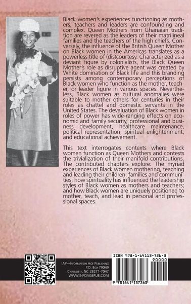 Black women's experiences functioning as mothers, teachers and leaders are confounding and complex. Queen Mothers from Ghanaian tradition are revered as the leaders of their matrilineal families and the teachers of the high chiefs (Müller, 2013; Stoeltje, 1997). Conversely, the influence of the British Queen Mother on Black women in the Americas translates as a powerless title of (dis)courtesy. Characterized as a deviant figure by colonialists, the Black Queen Mother's role as disruptive agent was created by White domination of Black life (Masenya, 2014) and this branding persists among contemporary perceptions of Black women who function as the mother, teacher, or leader figure in various spaces. Nevertheless, Black women as cultural anomalies were suitable to mother others for centuries in their roles as chattel and domestic servants in the United States. Dill (2014), Lawson (2000), Lewis (1977) and Rodriguez (2016) provide explorations of the devaluation of Black women in roles of power with these effects wide-ranging from economic and family security, professional and business development, healthcare maintenance, political representation, spiritual enlightenment and educational achievement. This text interrogates contexts where Black women function as Queen Mothers and contests the trivialization of their manifold contributions. The contributed chapters explore: The myriad experiences of Black women mothering, teaching and leading their children, families and communities; how spirituality has influenced the leadership styles of Black women as mothers and teachers; and how Black women are uniquely positioned to mother, teach, and lead in personal and professional spaces.