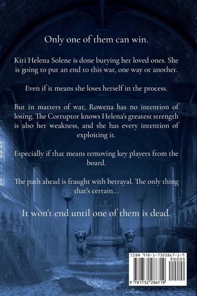 Only one of them can win. Kiri Helena Solene is done burying her loved ones. She is going to put an end to this war, one way or another. Even if it means she loses herself in the process. But in matters of war, Rowena has no intention of losing. The Corruptor knows Helena's greatest strength is also her weakness, and she has every intention of exploiting it. Especially if that means removing key players from the board. The path ahead is fraught with betrayal. The only thing that's certain... It won't end until one of them is dead.