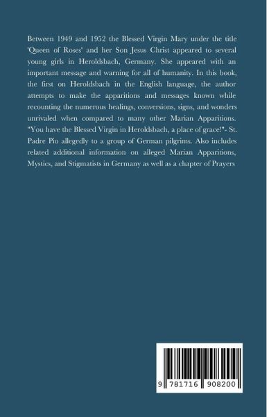 An account of the Marian Apparitions in Heroldsbach, Germany between 1949 and 1952 where Our Lady appeared to several young children. Read about the messages and warnings she imparted as well as the many miracles and wonders that occurred in this blessed place. Also includes a short chapter of prayers requested by the Virgin.