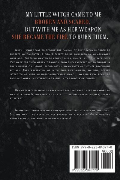 I waged war to become the Pakhan of the Bratva to protect my daughter. But I didn't expect to be ambushed by an arranged marriage. The Irish wanted to cement our alliance, as if the sacrifices I'd made for them weren't enough. Now they expect me to engage in their barbaric customs; blood oaths, hand fasts and other ridiculous rituals. They presented me with this fiery-haired, waifish, scared little thing with a unpronounceable name. I was halfway ready to back out when she stabbed me right in the middle of dinner. Her unexpected show of back bone told me that there was more to my little fiancée than meets the eye. I'd relish unraveling her, secret by secret. In the end, there was only one question I had for our wedding day: Did she want the heads of her enemies on a platter? Or would she rather plunge the knife into them herself? My little witch came to me broken and scared, but with me as her weapon she became the fire to burn them. Queen of the Night is the start of a duology and will conclude with King of the Dawn.