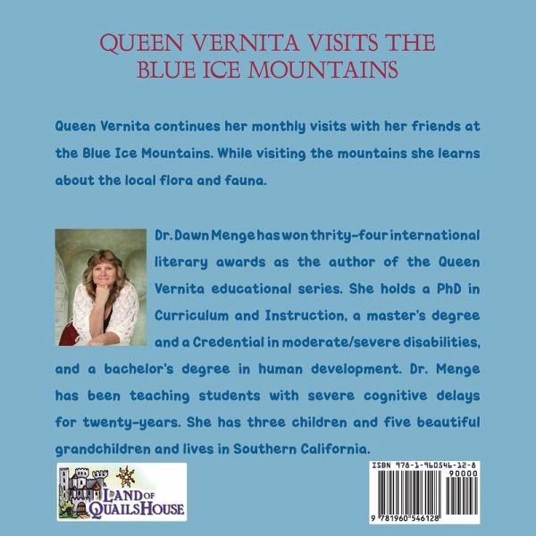 Dr. Dawn Menge has won forty-one International awards as the author of the Queen Vernita educational series. She holds a PhD in Curriculum and Instruction, a Master's Degree and a Clear Credential in moderate/severe disabilities, and a Bachelor's Degree in human development. Dr. Menge has been teaching severely handicapped students for nineteen years. She has three children and five beautiful grandchildren and lives in Southern California.