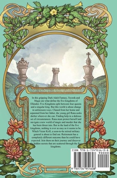 In this gripping Dark Adult Fantasy, Swords and Magic are what define the five kingdoms of Ellendor. Five Kingdoms split between four queens and a singular king. But this world is about change in unforeseen ways. Chased from her home and separated from her father, the young girl Rana seeks shelter wherever she can. Finding help in a dubious set of circumstances. Rana must protect herself and navigate a new world of magic and murder that she has been thrust into. But in the land of the five kingdoms, nothing is ever as easy as it seems to be. Which Victor Krill, a soon to be retired military general is about to find out. Retirement has a completely different outcome than he could have expected. Join them on their journey and discover the hidden secrets that are scattered through the five kingdoms.