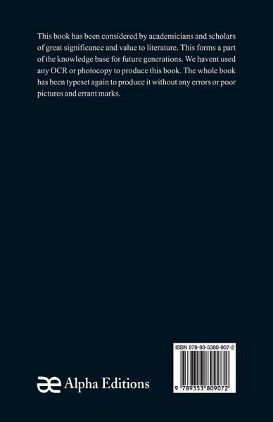 This book has been considered by academicians and scholars of great significance and value to literature. This forms a part of the knowledge base for future generations. We have represented this book in the same form as it was first published. Hence any marks seen are left intentionally to preserve its true nature.