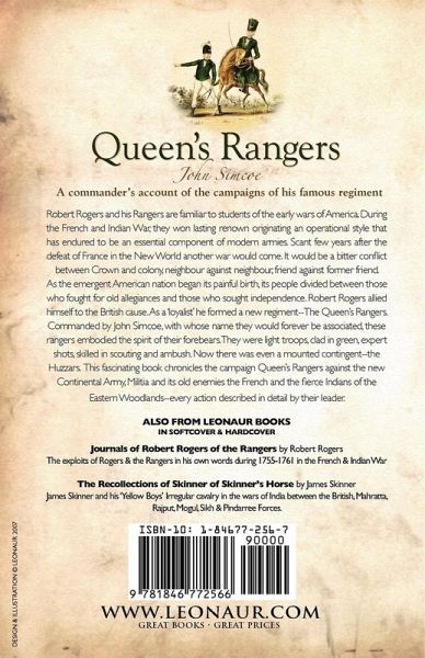 A commander's account of the campaigns of his famous regiment Robert Rogers and his Rangers are familiar to students of the early wars of America. During the French and Indian War, they won lasting renown originating an operational style that has endured to be an essential component of modern armies. Scant few years after the defeat of France in the New World another war would come. It would be a bitter conflict between Crown and colony, neighbour against neighbour, friend against former friend. As the emergent American nation began its painful birth, its people divided between those who fought for old allegiances and those who sought independence. Robert Rogers allied himself to the British cause. As a 'loyalist' he formed a new regiment--The Queen's Rangers. Commanded by John Simcoe, with whose name they would forever be associated, these rangers embodied the spirit of their forebears. They were light troops, clad in green, expert shots, skilled in scouting and ambush. Now there was even a mounted contingent--the Huzzars. This fascinating book chronicles the campaign Queen's Rangers against the new Continental Army, Militia and its old enemies the French and the fierce Indians of the Eastern Woodlands--every action described in detail by their leader.