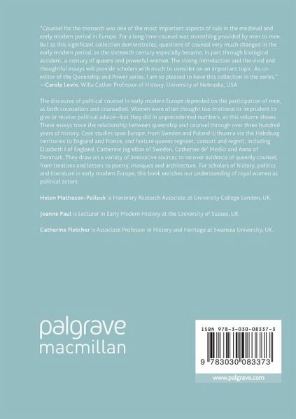 The discourse of political counsel in early modern Europe depended on the participation of men, as both counsellors and counselled. Women were often thought too irrational or imprudent to give or receive political advice-but they did in unprecedented numbers, as this volume shows. These essays trace the relationship between queenship and counsel through over three hundred years of history. Case studies span Europe, from Sweden and Poland-Lithuania via the Habsburg territories to England and France, and feature queens regnant, consort and regent, including Elizabeth I of England, Catherine Jagiellon of Sweden, Catherine de' Medici and Anna of Denmark. They draw on a variety of innovative sources to recover evidence of queenly counsel, from treatises and letters to poetry, masques and architecture. For scholars of history, politics and literature in early modern Europe, this book enriches our understanding of royal women as political actors.