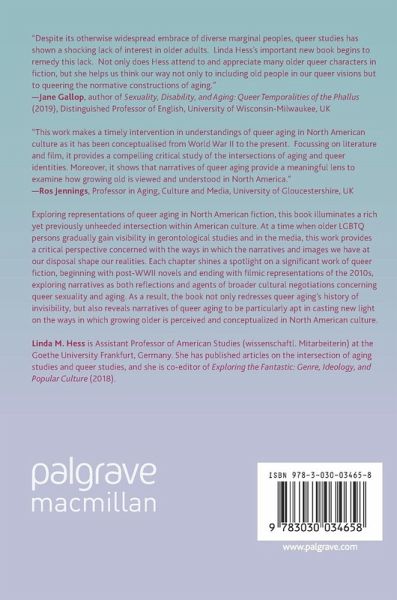 Exploring representations of queer aging in North American fiction, this book illuminates a rich yet previously unheeded intersection within American culture. At a time when older LGBTQ persons gradually gain visibility in gerontological studies and in the media, this work provides a critical perspective concerned with the ways in which the narratives and images we have at our disposal shape our realities. Each chapter shines a spotlight on a significant work of queer fiction, beginning with post-WWII novels and ending with filmic representations of the 2010s, exploring narratives as both reflections and agents of broader cultural negotiations concerning queer sexuality and aging. As a result, the book not only redresses queer aging's history of invisibility, but also reveals narratives of queer aging to be particularly apt in casting new light on the ways in which growing older is perceived and conceptualized in North American culture.