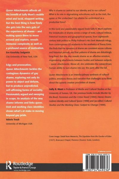 Why is shame so central to our identity and to our culture? What is its role in stigmatizing subcultures such as the Irish, the queer or the underclass? Can shame be understood as a productive force? In this lucid and passionately argued book, Sally R. Munt explores the vicissitudes of shame across a range of texts, cultural milieux, historical locations and geographical spaces - from eighteenth-century Irish politics to Philip Pullman's His Dark Materials trilogy, from contemporary US academia to the aesthetics of Tracey Emin. She finds that the dynamics of shame are consistent across cultures and historical periods, and that patterns of shame are disturbingly long-lived. But she also reveals shame as an affective emotion, engendering attachments between bodies and between subjects - queer attachments. Above all, she celebrates the extraordinary human ability to turn shame into joy: the party after the fall. Queer Attachments is an interdisciplinary synthesis of cultural politics, emotions theory and narrative that challenges us to think about the queerly creative proclivities of shame.