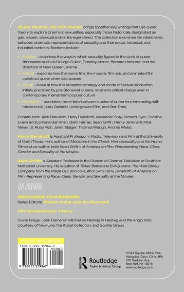 "Queer Cinema, the Film Reader "examines the relationship between cinematic representations of sexuality and their social, historical, and industrial contexts. Divided into an introductory overview and four topic areas, the reader explores how recent critical thinking has approached queer sexualities in relation to the cinema. The four sections discuss * Authorship - examining the role of sexuality in the work of queer filmmakers such as George Cukor, Dorothy Arzner, Barbara Hammer, and the directors of New Queer Cinema * Forms - exploring how genres such as the horror film, the musical, film noir, and the animated film construct queer cinematic spaces *Camp - looking at how this reception strategy and mode of textual production, initially practiced by pre-Stonewall queers, retains its critical charge even in contemporary mainstream popular culture *Reception - considering three specific historical case studies of how queer fans have interacted with media texts from Judy Garland to "Star Trek. " The reader concludes with an essay that queerly rethinks classical gaze theory.