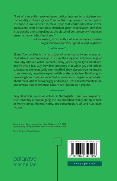 "Guy Davidson's Queer Commodities: Contemporary US Fiction, Consumer Capitalism, and Gay and Lesbian Subculture invites readers to re-evaluate literary representations of consumerism in recent fictional renderings of gay and lesbian subculture. ... Davidson's monograph will be of interest to scholars invested in the study of contemporary US fiction and consumer culture and recent literary representations of gay and lesbian subculture." (A Year's Work in English Studies, 2015)