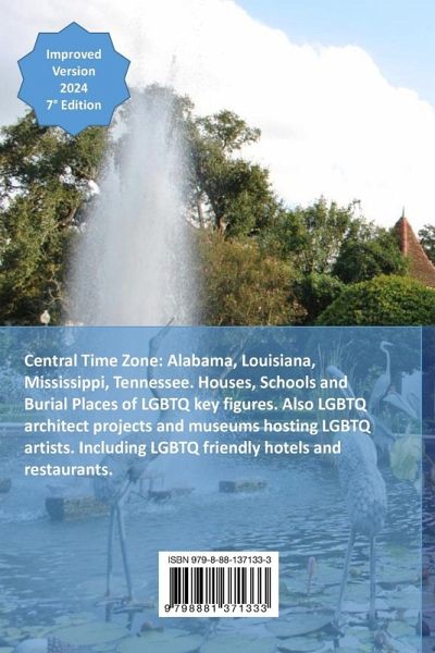 2024 Updated Edition. More places, more photos. Queer Places included: Central Time Zone: Alabama, Louisiana, Mississippi, Tennessee. Houses, Schools and Burial Places of LGBTQ key figures. Also LGBTQ architect projects and museums hosting LGBTQ artists. Including LGBTQ friendly hotels and restaurants.