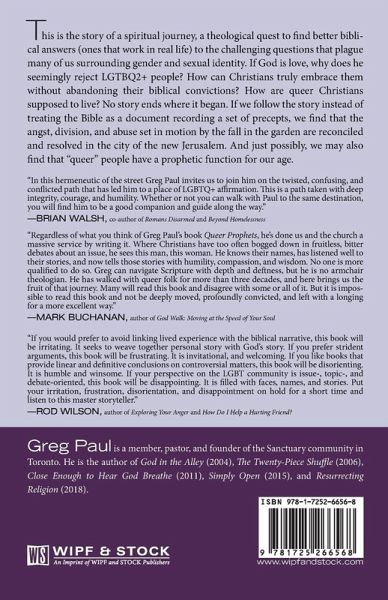 This is the story of a spiritual journey, a theological quest to find better biblical answers (ones that work in real life) to the challenging questions that plague many of us surrounding gender and sexual identity. If God is love, why does he seemingly reject LGTBQ2+ people? How can Christians truly embrace them without abandoning their biblical convictions? How are queer Christians supposed to live? No story ends where it began. If we follow the story instead of treating the Bible as a document recording a set of precepts, we find that the angst, division, and abuse set in motion by the fall in the garden are reconciled and resolved in the city of the new Jerusalem. And just possibly, we may also find that "queer" people have a prophetic function for our age.