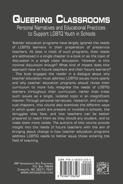 Teacher Education programs have largely ignored the needs of LGBTIQ learners in their preparation of pre¿service teachers. At best in most of such programs, their needs are addressed in a single chapter in a book or as the topic of discussion in a single class discussion. However, is this minimal discussion enough? What kind of impact does this approach have on future teachers and their future learners? This book engages the reader in a dialogue about why teacher education must address LGBTIQ issues more openly and why teacher education programs should revise their curriculum to more fully integrate the needs of LGBTIQ learners throughout their curriculum, rather than treat such issues as a single, isolated topic in an insignificant manner. Through personal narratives, research, and conceptual chapters, this volume also examines the different ways in which queer youth are present or invisible in schools, the struggles they face, and how teachers can be better prepared to reach them as they should any student, and to make them more visible. The authors of this volume provide insight into the needs of future teachers with the aim of bringing about change in how teacher education programs address LGBTIQ needs to better equip those entering the field of teaching.