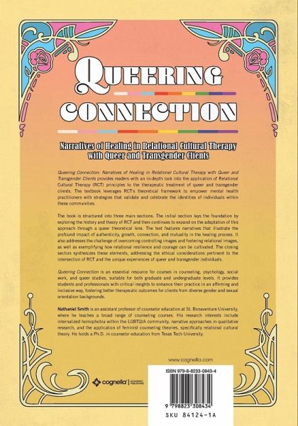 Queering Connection: Narratives of Healing in Relational Cultural Therapy with Queer and Transgender Clients provides readers with an in-depth look into the application of Relational Cultural Therapy (RCT) principles to the therapeutic treatment of queer and transgender clients. The textbook leverages RCT's theoretical framework to empower mental health practitioners with strategies that validate and celebrate the identities of individuals within these communities. The book is structured into three main sections. The initial section lays the foundation by exploring the history and theory of RCT and then continues to expand on the adaptation of this approach through a queer theoretical lens. The text features narratives that illustrate the profound impact of authenticity, growth, connection, and mutuality in the healing process. It also addresses the challenge of overcoming controlling images and fostering relational images, as well as exemplifying how relational resilience and courage can be cultivated. The closing section synthesizes these elements, addressing the ethical considerations pertinent to the intersection of RCT and the unique experiences of queer and transgender individuals. Queering Connection is an essential resource for courses in counseling, psychology, social work, and queer studies, suitable for both graduate and undergraduate levels. It provides students and professionals with critical insights to enhance their practice in an affirming and inclusive way, fostering better therapeutic outcomes for clients from diverse gender and sexual orientation backgrounds.
