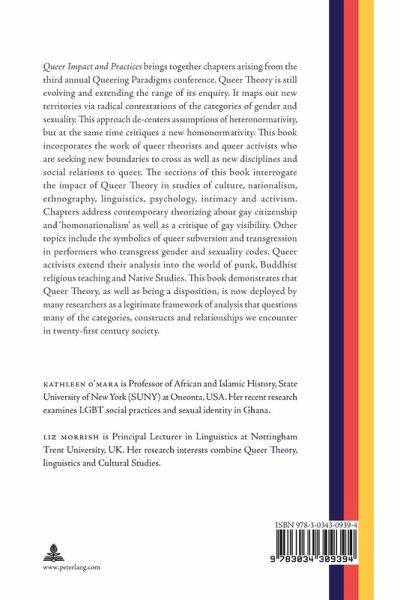 Queer Impact and Practices brings together chapters arising from the third annual Queering Paradigms conference. Queer Theory is still evolving and extending the range of its enquiry. It maps out new territories via radical contestations of the categories of gender and sexuality. This approach de-centers assumptions of heteronormativity, but at the same time critiques a new homonormativity. This book incorporates the work of queer theorists and queer activists who are seeking new boundaries to cross as well as new disciplines and social relations to queer. The sections of this book interrogate the impact of Queer Theory in studies of culture, nationalism, ethnography, linguistics, psychology, intimacy and activism. Chapters address contemporary theorizing about gay citizenship and 'homonationalism' as well as a critique of gay visibility. Other topics include the symbolics of queer subversion and transgression in performers who transgress gender and sexuality codes. Queer activists extend their analysis into the world of punk, Buddhist religious teaching and Native Studies. This book demonstrates that Queer Theory, as well as being a disposition, is now deployed by many researchers as a legitimate framework of analysis that questions many of the categories, constructs and relationships we encounter in twenty-first century society.