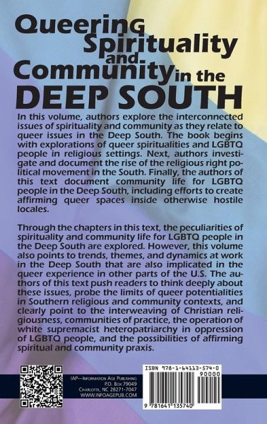 In this volume, authors explore the interconnected issues of spirituality and community as they relate to queer issues in the Deep South. The book begins with explorations of queer spiritualities and LGBTQ people in religious settings. Next, authors investigate and document the rise of the religious right political movement in the South. Finally, the authors of this text document community life for LGBTQ people in the Deep South, including efforts to create affirming queer spaces inside otherwise hostile locales. Through the chapters in this text, the peculiarities of spirituality and community life for LGBTQ people in the Deep South are explored. However, this volume also points to trends, themes, and dynamics at work in the Deep South that are also implicated in the queer experience in other parts of the U.S. The authors of this text push readers to think deeply about these issues, probe the limits of queer potentialities in Southern religious and community contexts, and clearly point to the interweaving of Christian religiousness, communities of practice, the operation of white supremacist heteropatriarchy in oppression of LGBTQ people, and the possibilities of affirming spiritual and community praxis.