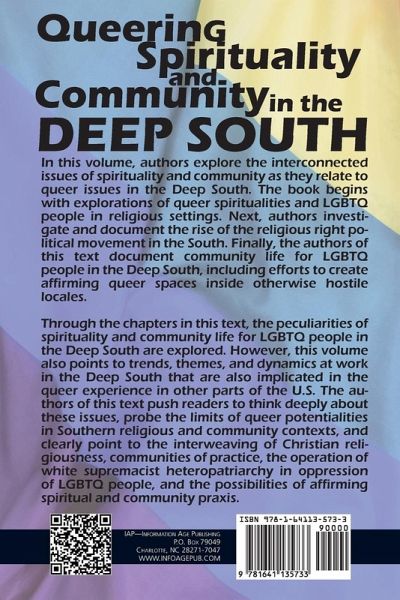 In this volume, authors explore the interconnected issues of spirituality and community as they relate to queer issues in the Deep South. The book begins with explorations of queer spiritualities and LGBTQ people in religious settings. Next, authors investigate and document the rise of the religious right political movement in the South. Finally, the authors of this text document community life for LGBTQ people in the Deep South, including efforts to create affirming queer spaces inside otherwise hostile locales. Through the chapters in this text, the peculiarities of spirituality and community life for LGBTQ people in the Deep South are explored. However, this volume also points to trends, themes, and dynamics at work in the Deep South that are also implicated in the queer experience in other parts of the U.S. The authors of this text push readers to think deeply about these issues, probe the limits of queer potentialities in Southern religious and community contexts, and clearly point to the interweaving of Christian religiousness, communities of practice, the operation of white supremacist heteropatriarchy in oppression of LGBTQ people, and the possibilities of affirming spiritual and community praxis.